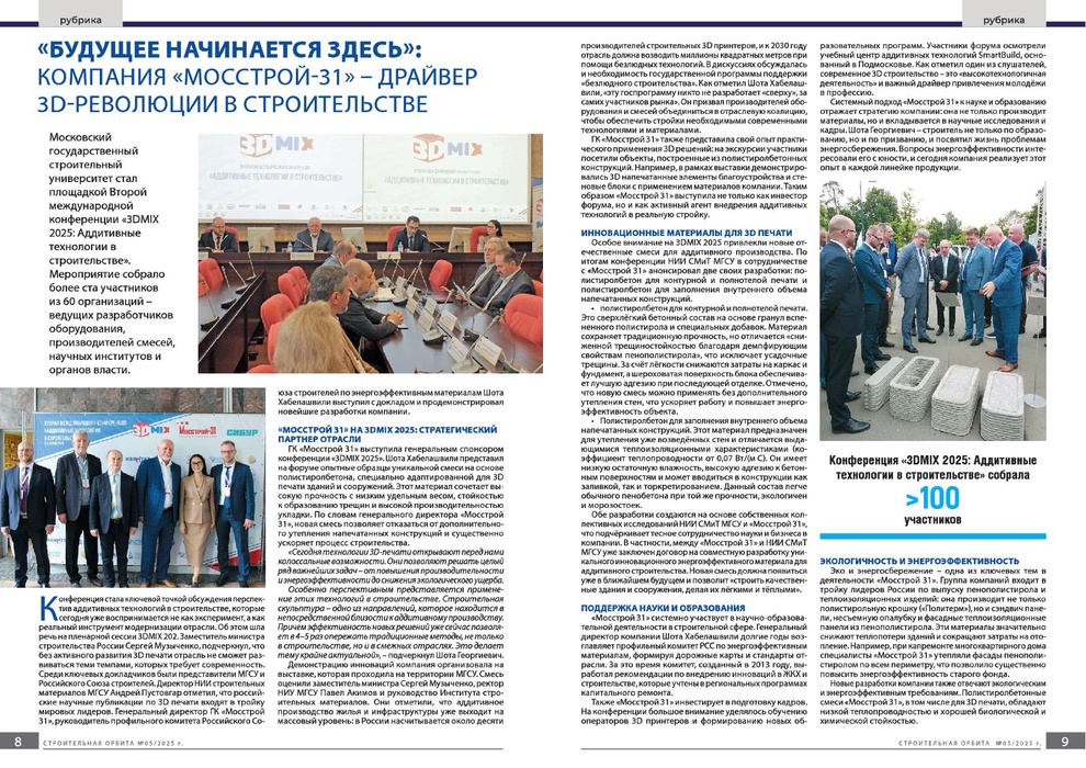 «БУДУЩЕЕ НАЧИНАЕТСЯ ЗДЕСЬ»: КОМПАНИЯ «МОССТРОЙ-31» – ДРАЙВЕР 3D-РЕВОЛЮЦИИ В СТРОИТЕЛЬСТВЕ