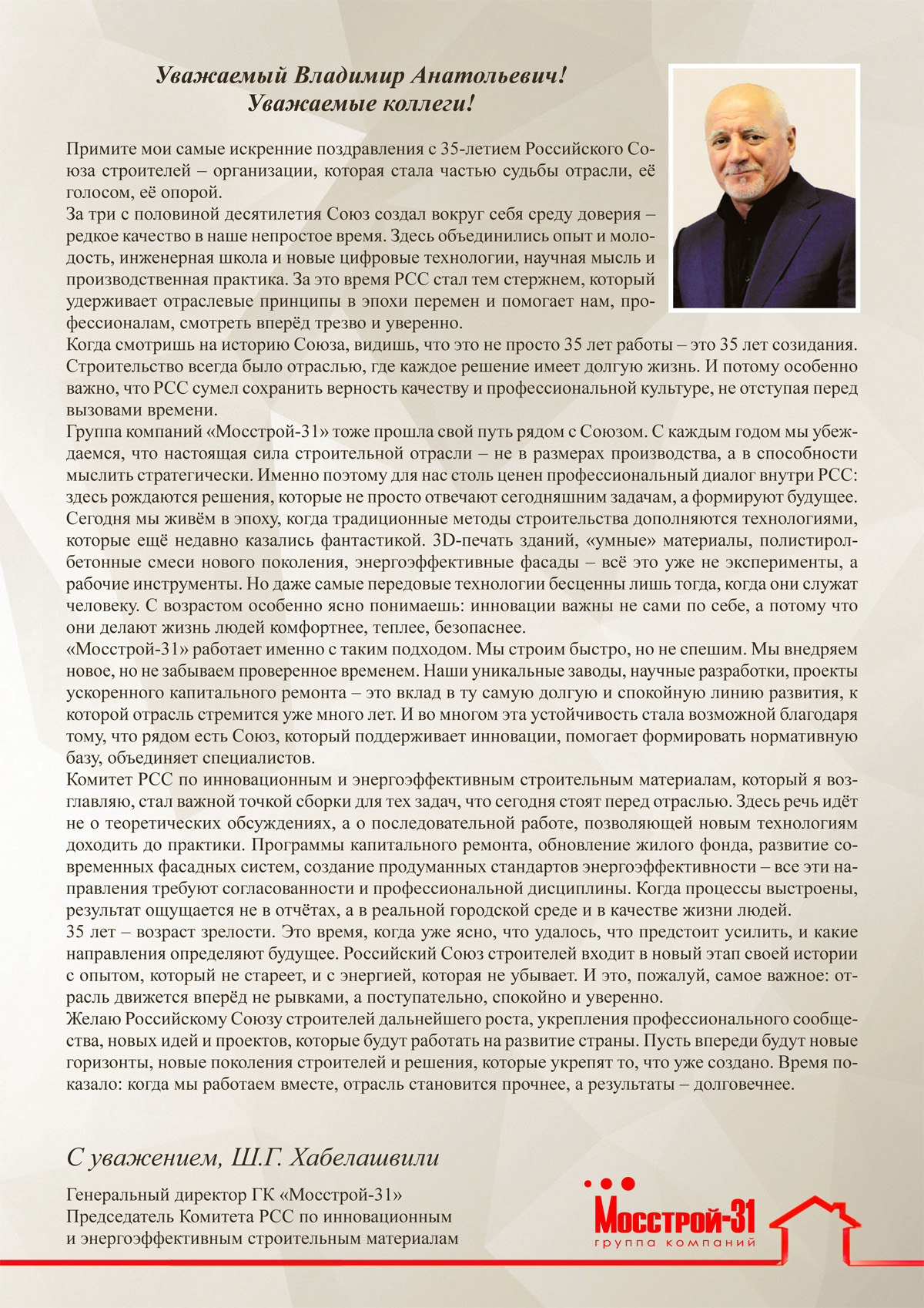 Новости / Поздравление с 35-летием Российского Союза строителей