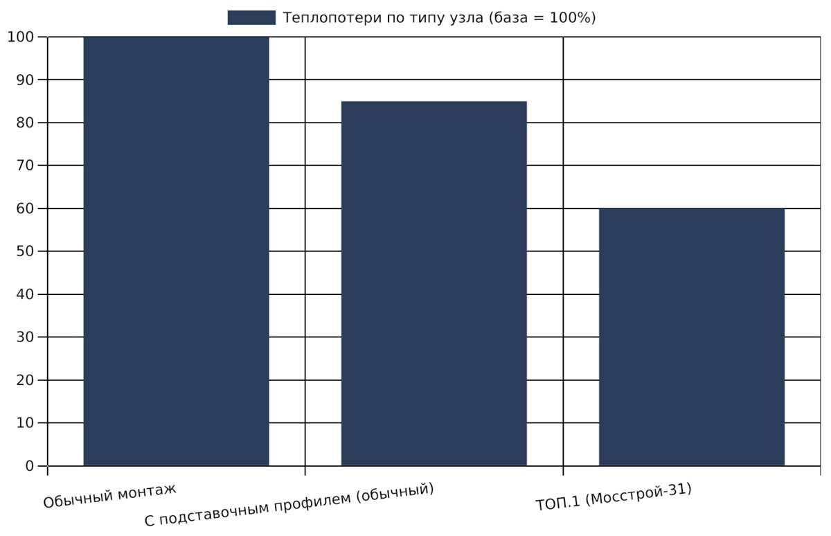 ТОП.1 снижает теплопотери до 40% относительно базового узла, минимизируя риск промерзания в стыке.